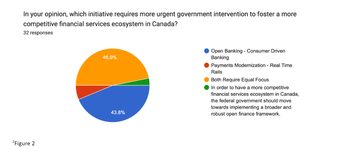 Figure 2: Which initiative requires more urgent government intervention to foster a more competitive financial services ecosystem in Canada? Data from a survey conducted by the Canadian Lenders Association. February, 2024.